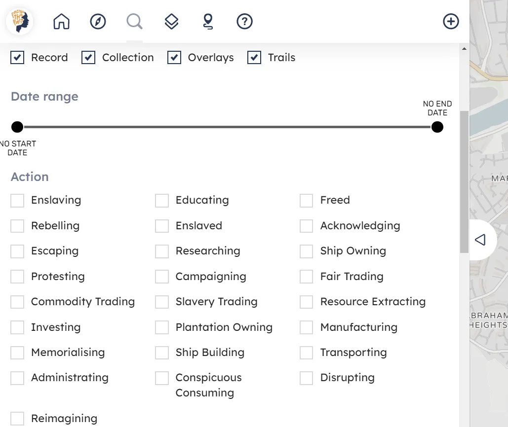 We want to understand the complex social, political and economic systems that allowed trans-Atlantic slavery to operate so pervasively. To be able to draw those connections, the terms used to search the digital map focus on verbs, or actions, rather than nouns. We want to hold those people who enabled and sustained the business of slavery accountable, whilst at the same time, giving agency to those people who were enslaved and whose voices are often forgotten.